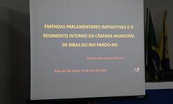 A Câmara Municipal de Ribas do Rio Pardo realizou, nesta quarta-feira (01), evento de capacitação para os vereadores e servidores. Com o tema Emendas Parlamentares Impositivas e Regimento Interno, a atividade foi ministrada pelo instrutor e palestrante Eduardo Dionízio.
