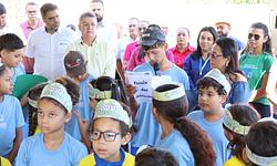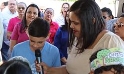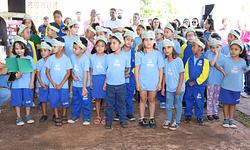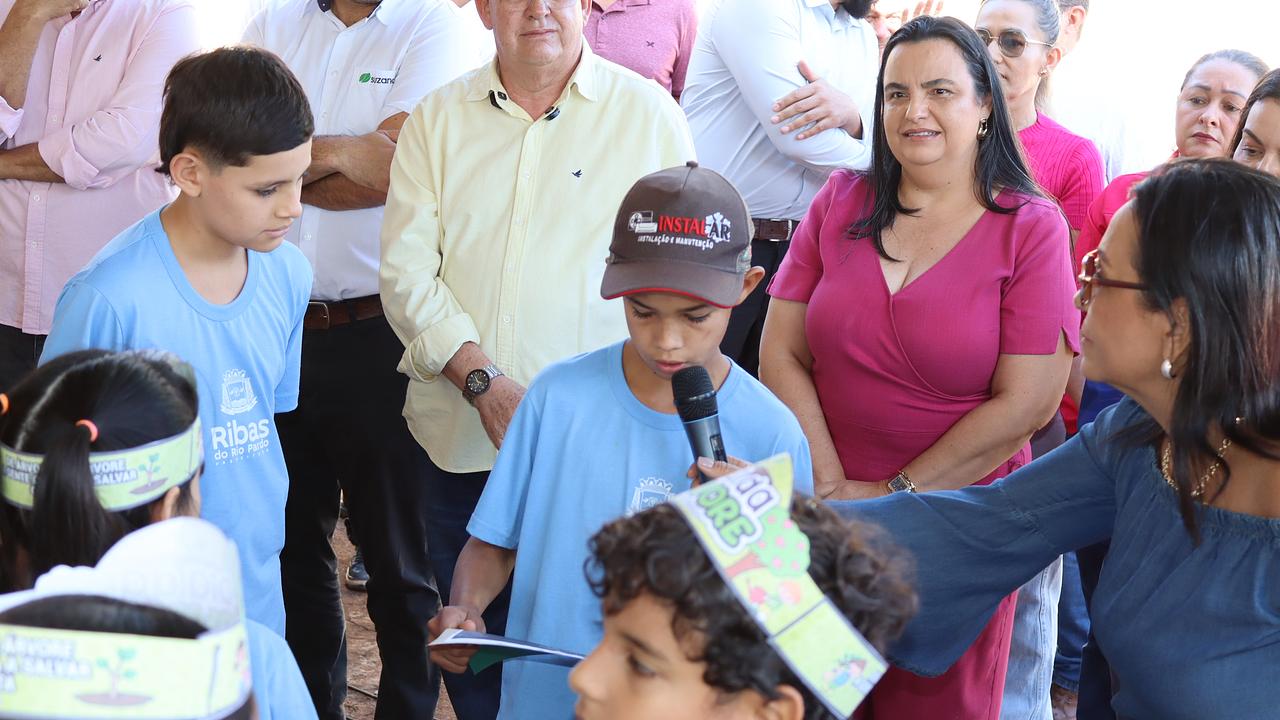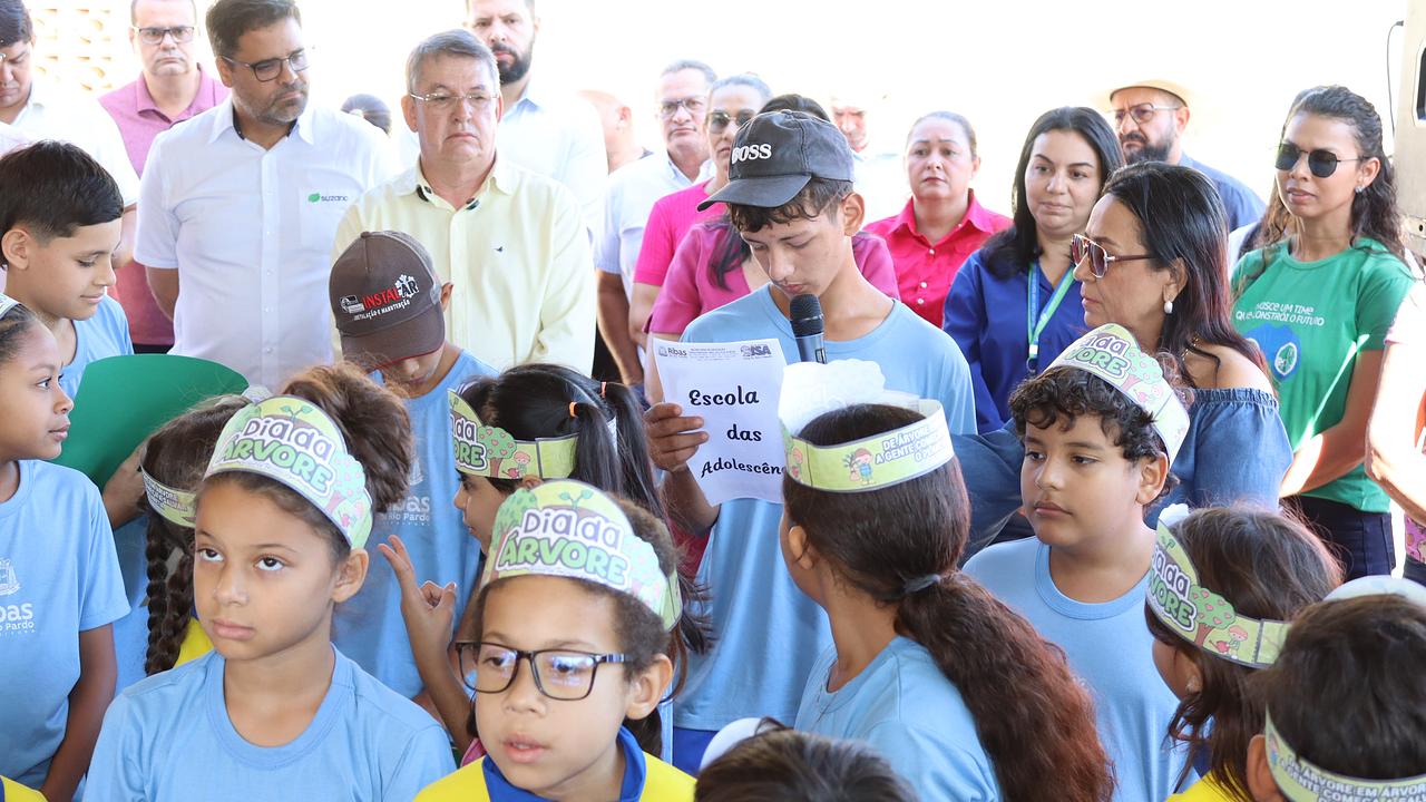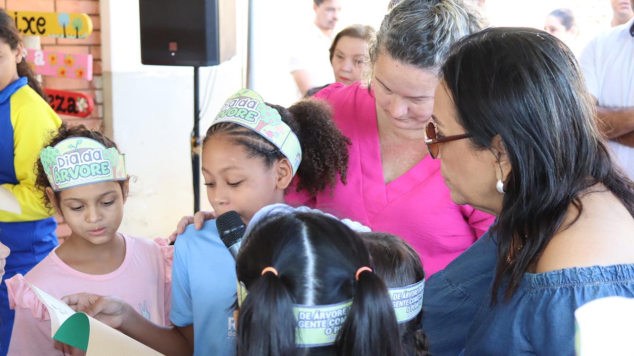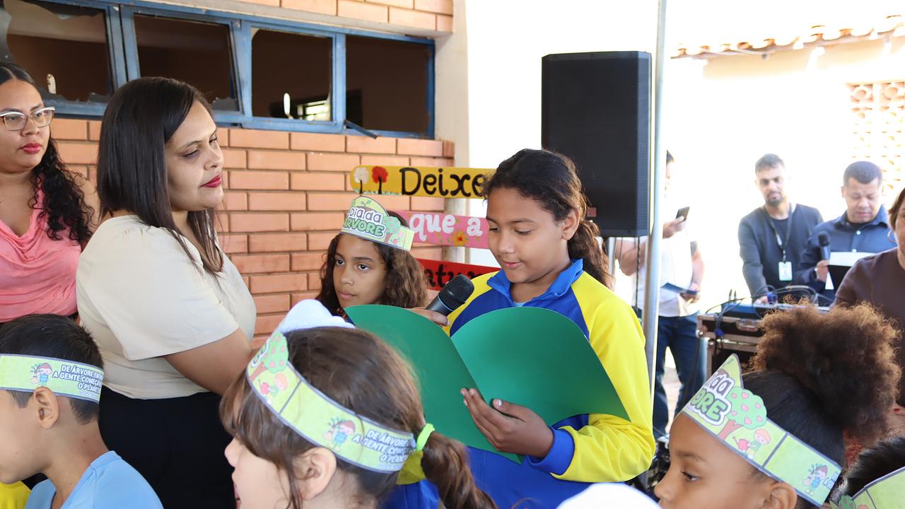 A cerimônia teve, antes do plantio e das falas das autoridades, leitura de poemas feitos pelos alunos da rede municipal de ensino em homenagem à Semana da Árvore.