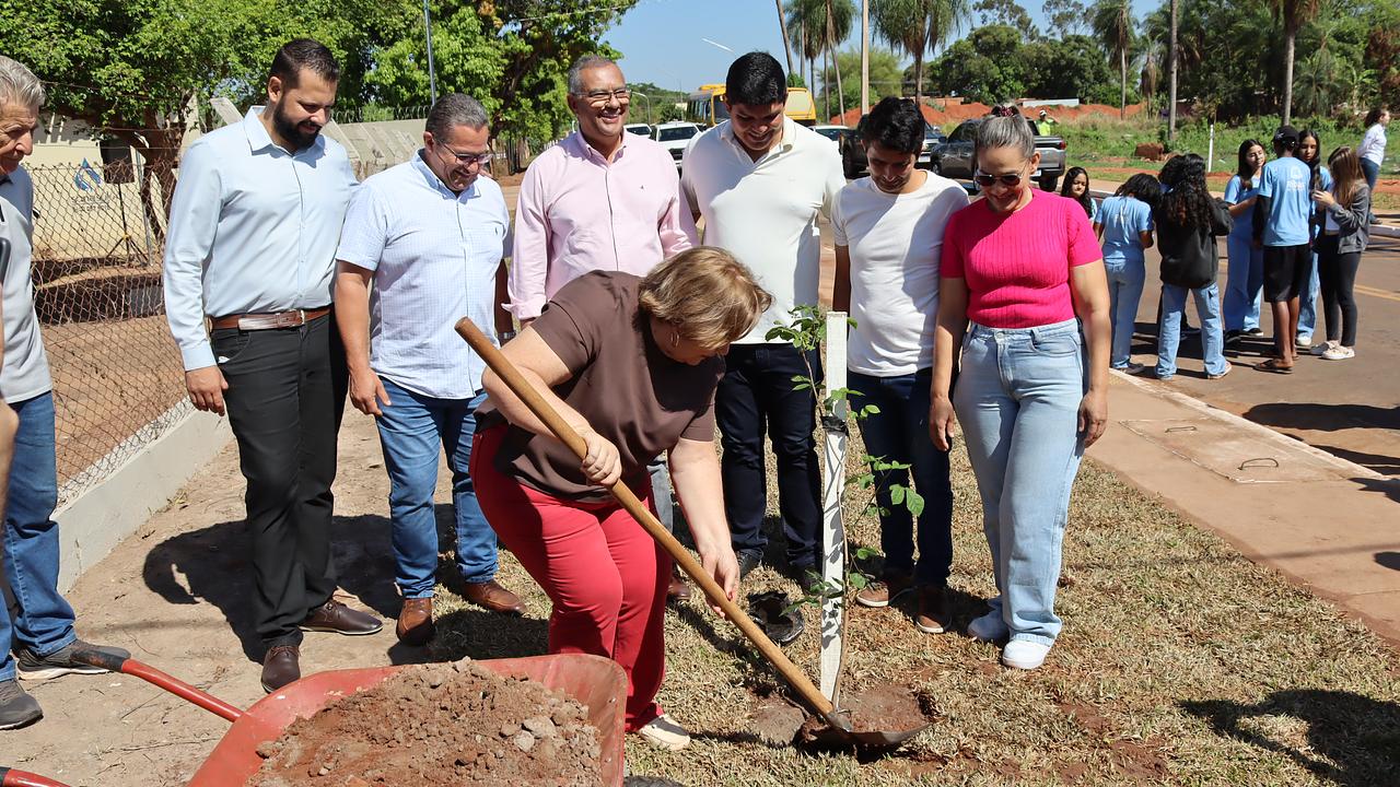 A presidente Tania Ferreira (PP) e outros seis vereadores de Ribas do Rio Pardo estiveram, nesta sexta-feira (26), acompanhando o prefeito Roberson Moureira (PSDB) e representantes da Suzano em ação de plantio de 715 mudas de ipês no Centro Velho.