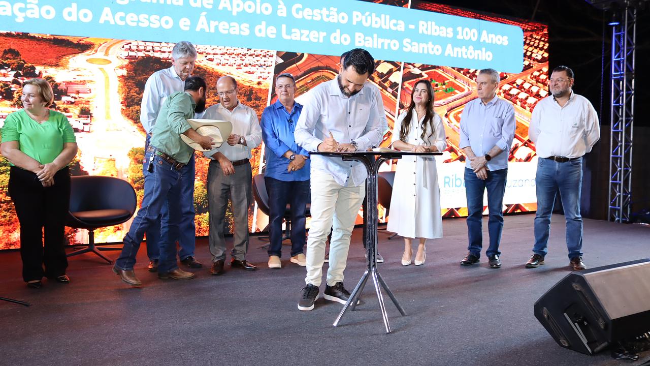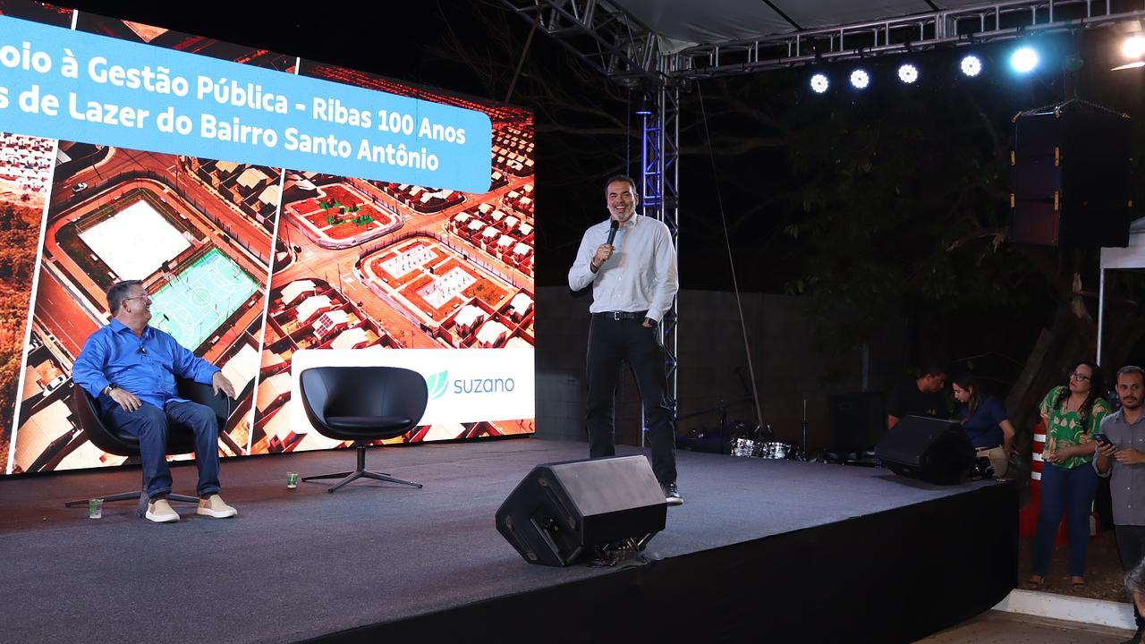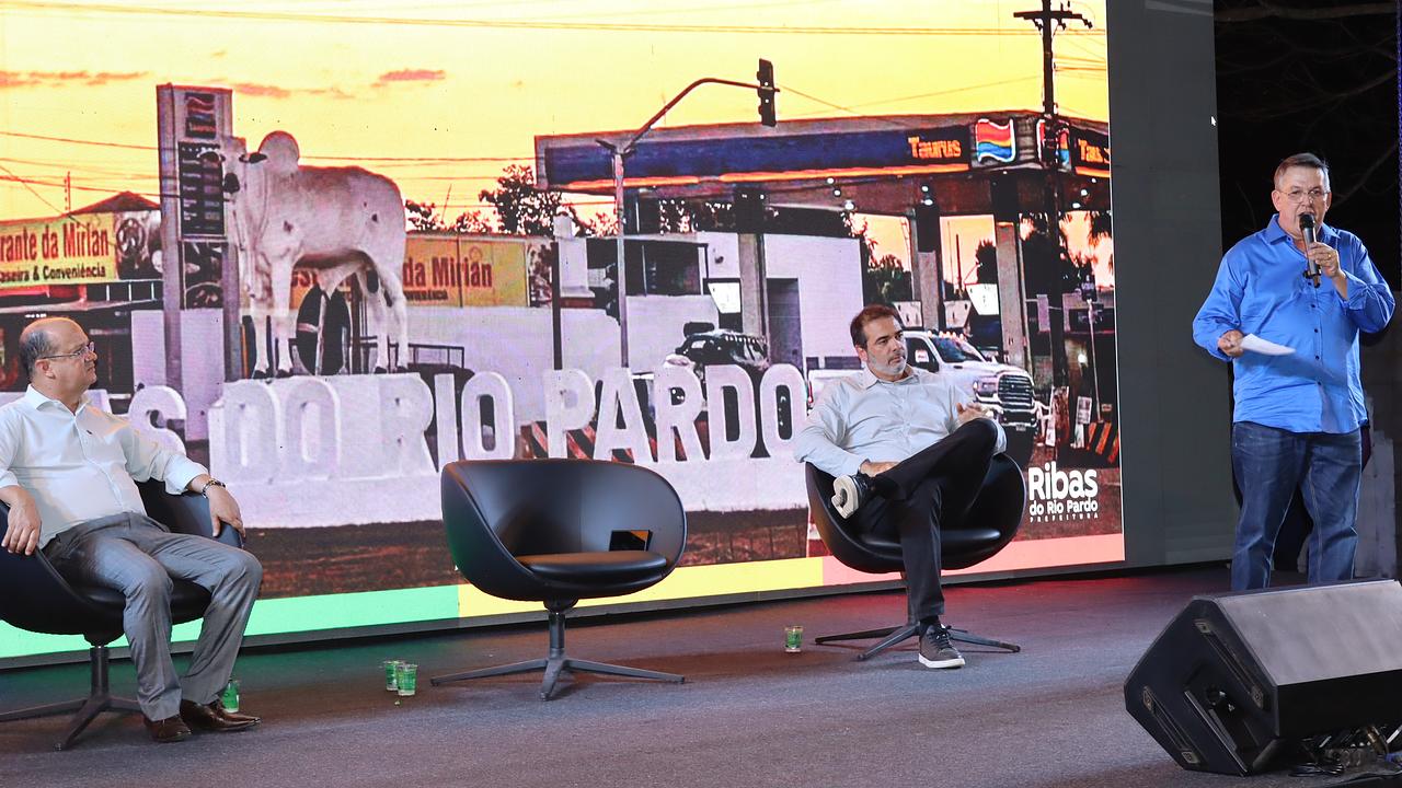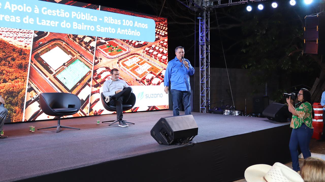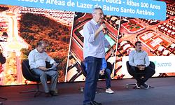 Além do vice-governador, permaneceram acomodados no palco o prefeito Roberson Moureira e o vice-presidente de Operações Celulose da Suzano, Aires Galhardo. Outro vereador a fazer uso da palavra foi José Heleriano (PP), que iniciou falando que a noite representou uma virada de página para Ribas do Rio Pardo.