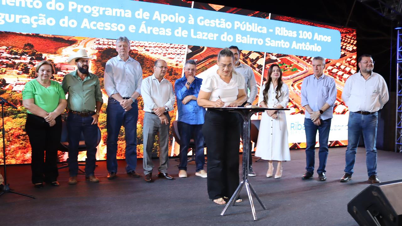 A presidente Tania Ferreira (PP) e outros oito vereadores de Ribas do Rio Pardo estiveram, nesta quinta-feira (04), acompanhando o vice-governador Barbosinha (PSD), ao lado do prefeito Roberson Moureira (PSDB), em solenidade de inauguração do acesso ao bairro Santo Antônio, que tem 954 novas moradias construídas pela Suzano. A empresa ainda lançou o Programa de Apoio à Gestão Pública – Ribas 100 Anos durante o evento.