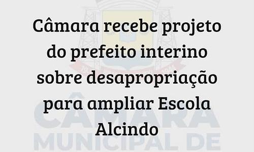 Câmara recebe projeto do prefeito interino sobre desapropriação para ampliar Escola Alcindo